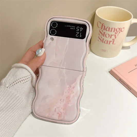 Pink marble phone case for Samsung Galaxy Z Flip 5 with wavy edge