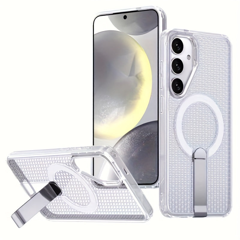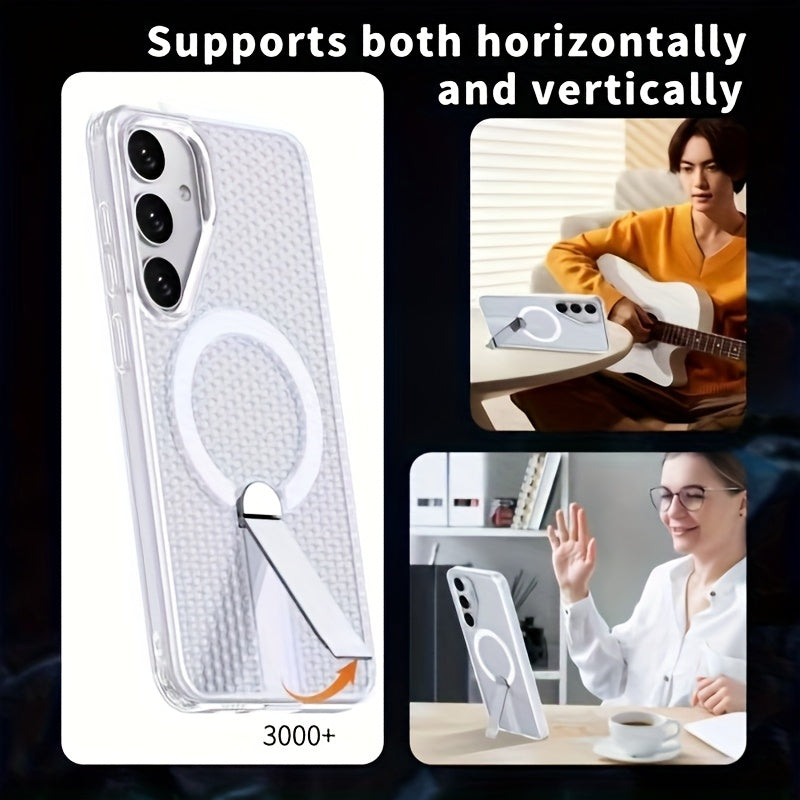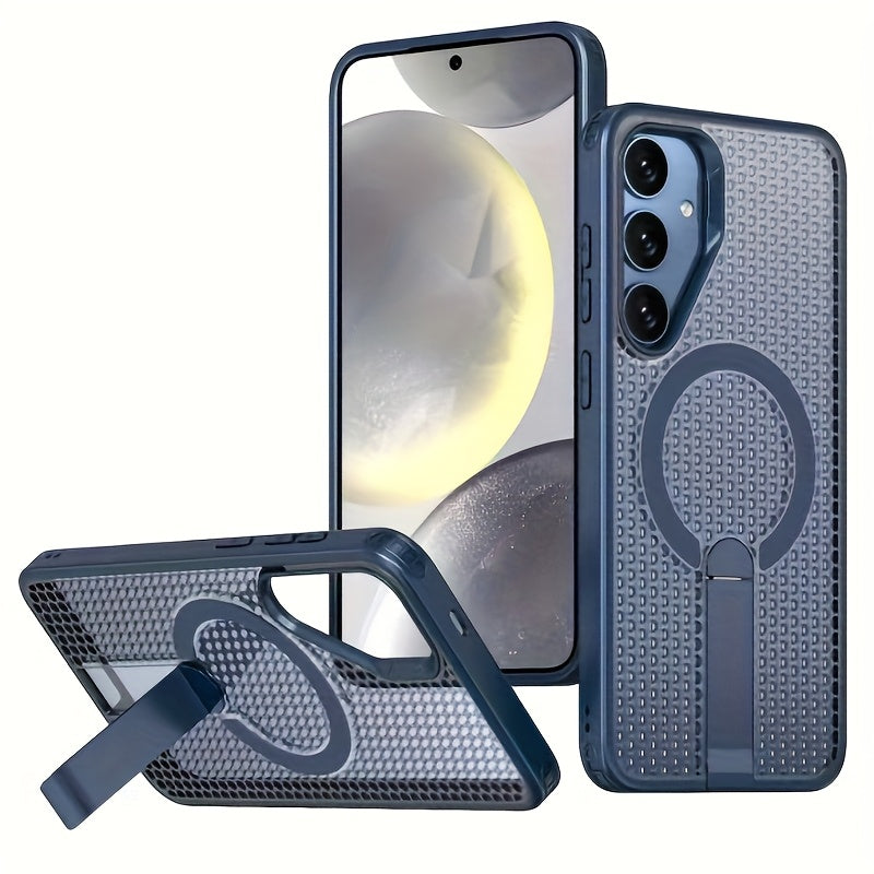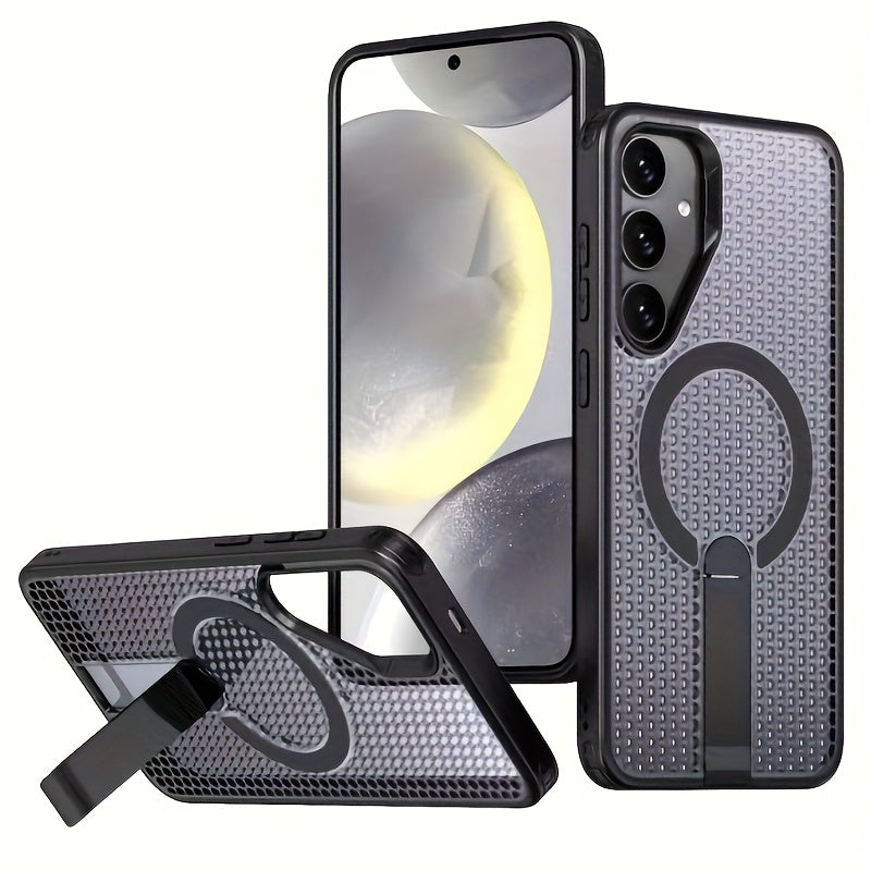 The AirHex Shield combines a breathable honeycomb design with smart functionality. Compatible with Samsung Galaxy S25, S25 Plus, S25 Ultra, S24, S24 Plus, and S24 Ultra, this case includes a foldable invisible stand and MagSafe compatibility for seamless wireless charging. Engineered for airflow and drop protection, it's ideal for daily use with a modern, minimalist look.