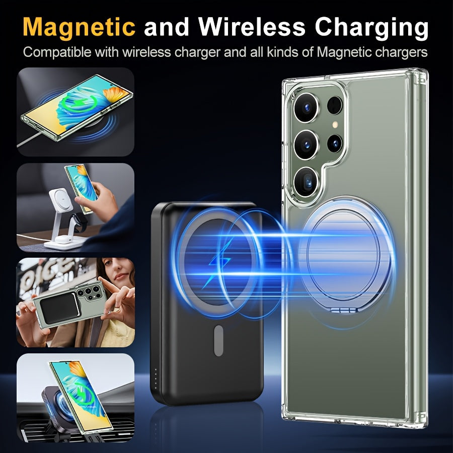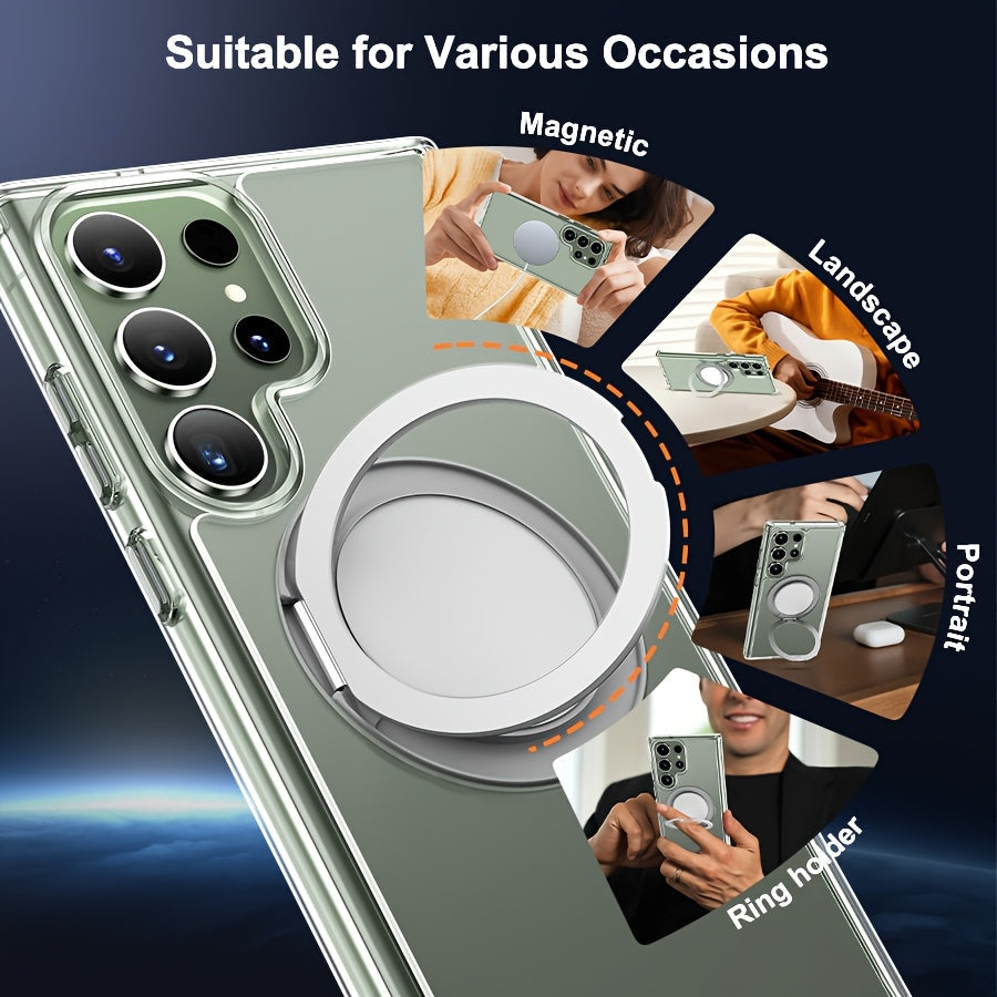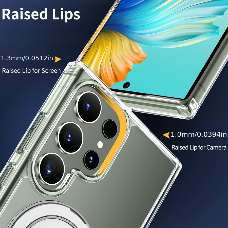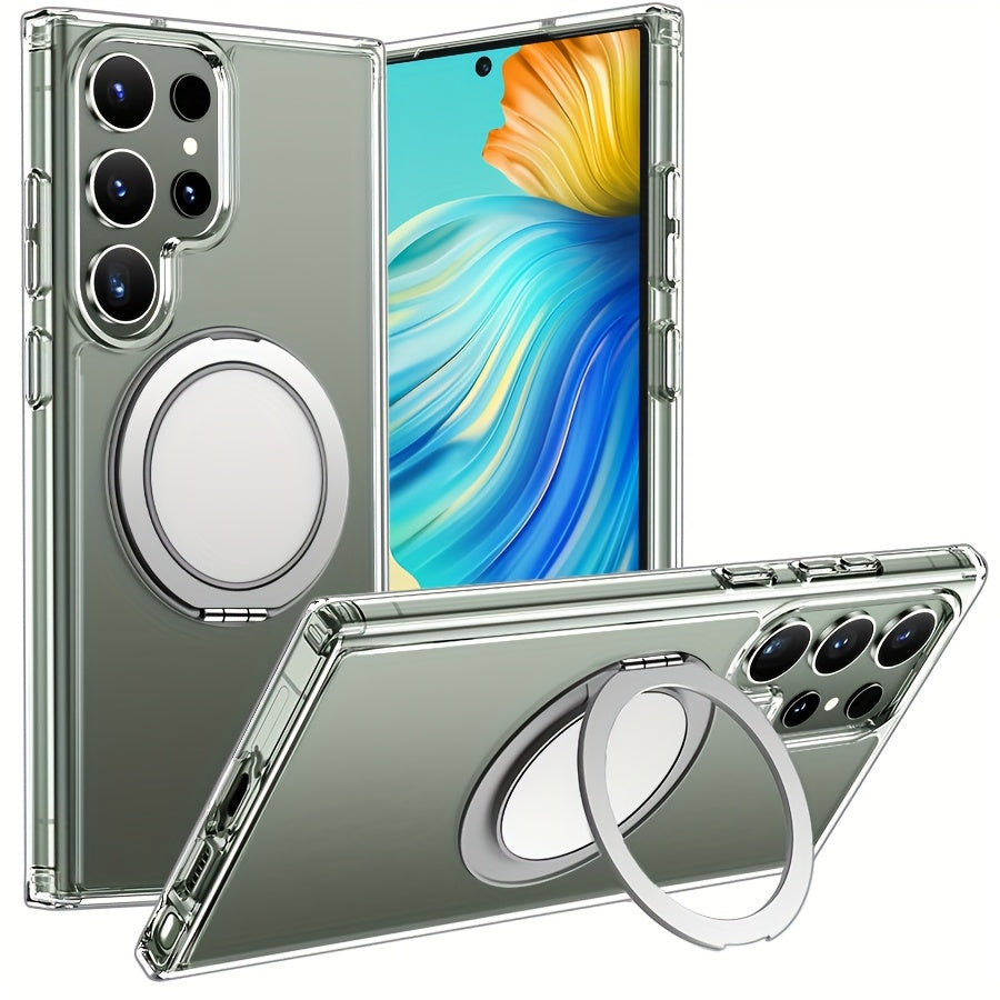 Discover the ClearShield 360, a sleek and durable MagSafe-compatible phone case engineered for the Galaxy S23 Ultra, S24 Ultra, and S25 Ultra. Built with a transparent acrylic back and shock-absorbing soft TPU edges, it offers full-body protection without hiding your device’s design. The 360° rotating magnetic stand adds versatility for hands-free use while supporting wireless charging with ease.