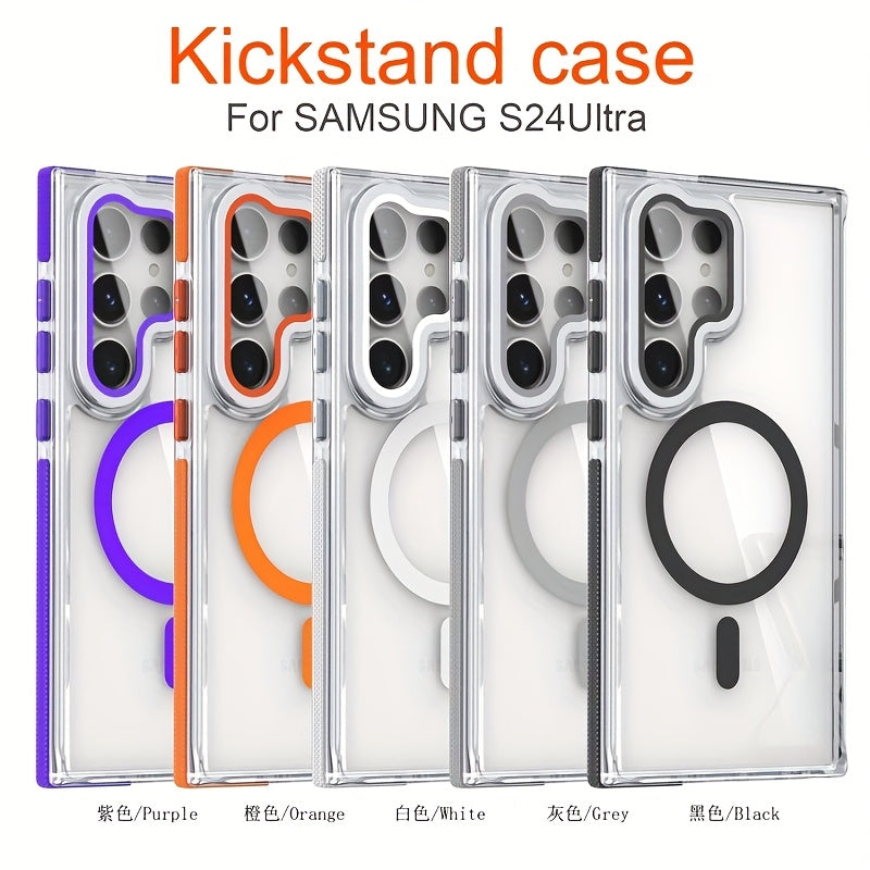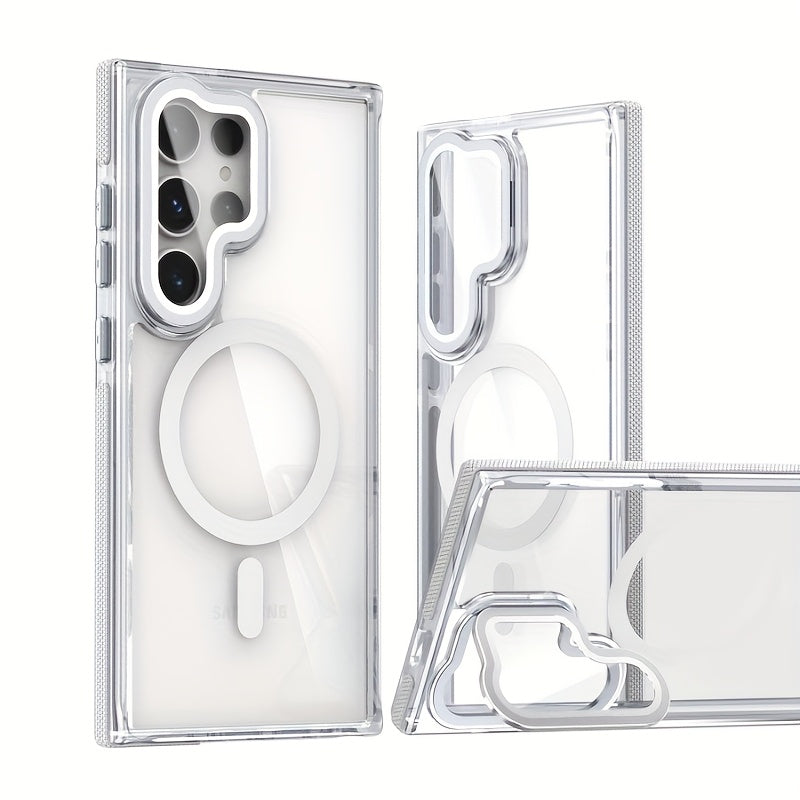The ClearShift Magnetic Stand Case combines minimalist style with advanced protection for your Samsung Galaxy. Built with a soft and hard hybrid shell, this transparent case features a hidden metal kickstand, lens protection, and strong magnetic compatibility—all without compromising the sleek design of your device.