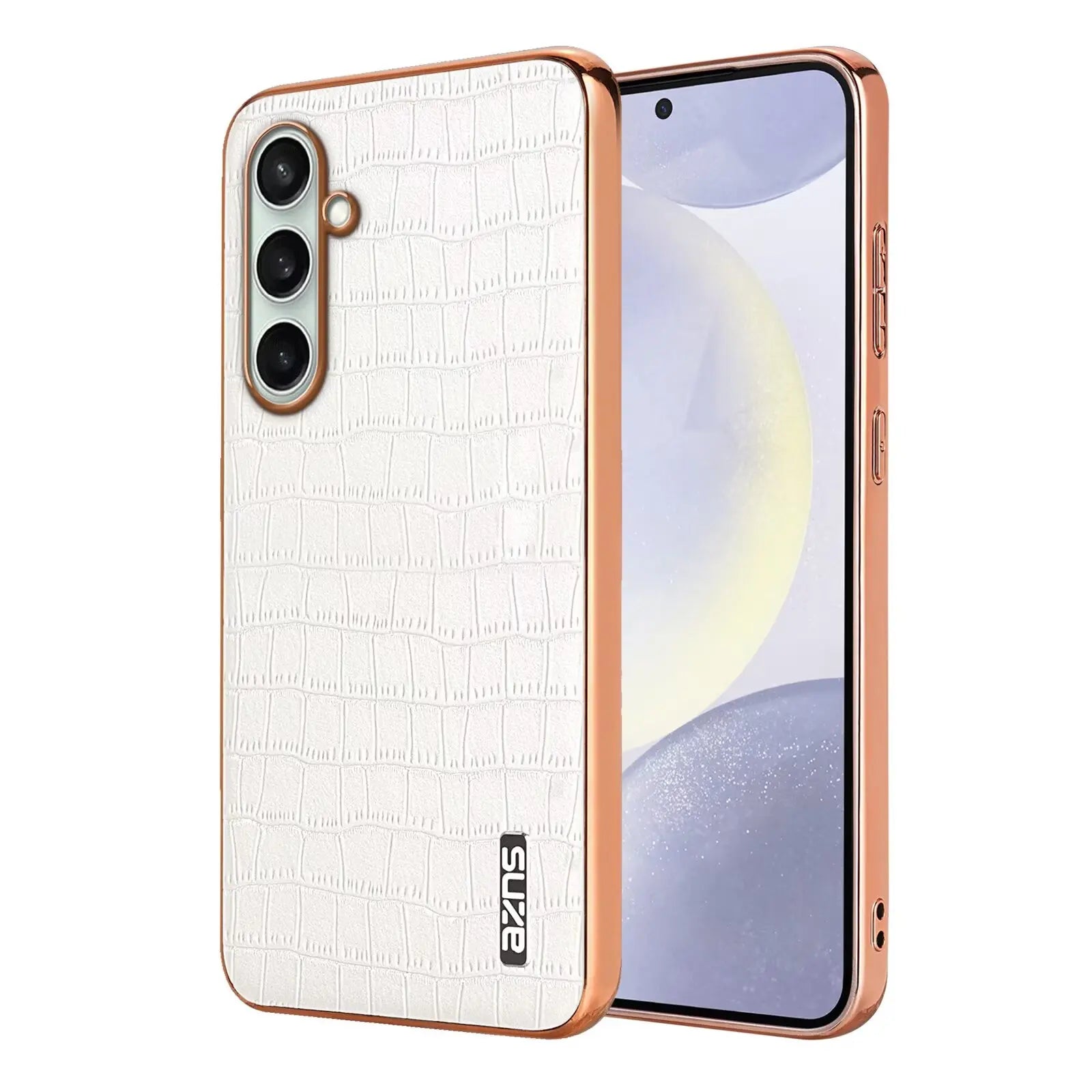 The LuxEdge Shield offers a stylish blend of luxury and durability with its plating bumper frame and premium leather texture. Designed specifically for the Samsung Galaxy S25 Edge, S25 Ultra, S25 Plus, and earlier models like S24, S23, S22 Plus, and S21 FE, this case delivers 360° protection without sacrificing elegance. It features precise camera cutouts, shock-resistant edges, and a comfortable grip for everyday use.
