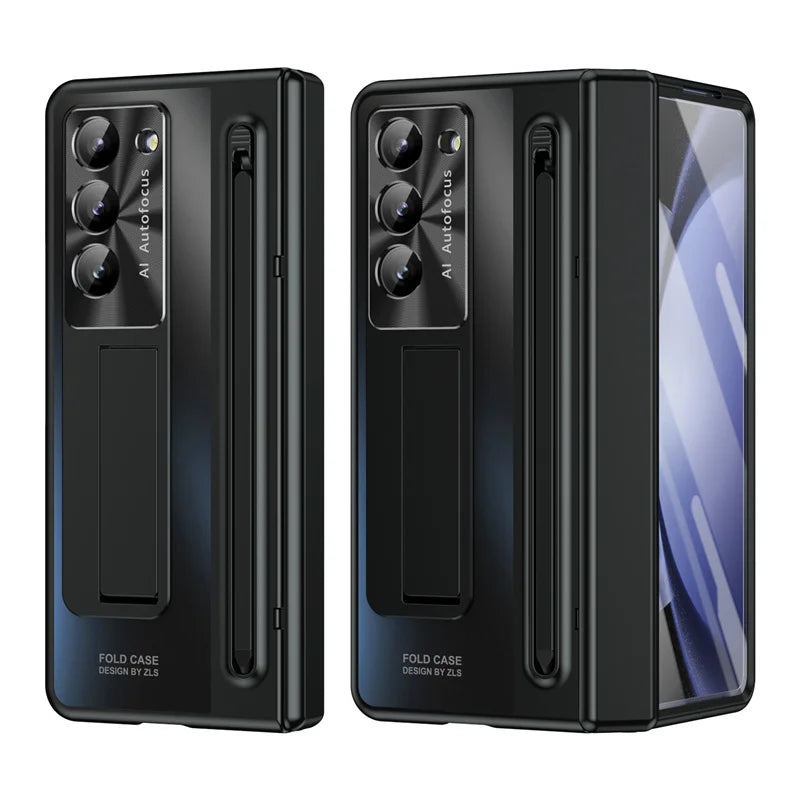 Introducing the MatteShield Pro, a premium hard case tailored for Samsung Galaxy Z Fold 4, 5, 6, and 7. Crafted with a sleek matte finish, this case offers a luxurious feel, robust protection, and a built-in S Pen holder for enhanced utility. Its slim yet strong design complements the elegance of your foldable phone while keeping it safe from daily wear and tear.