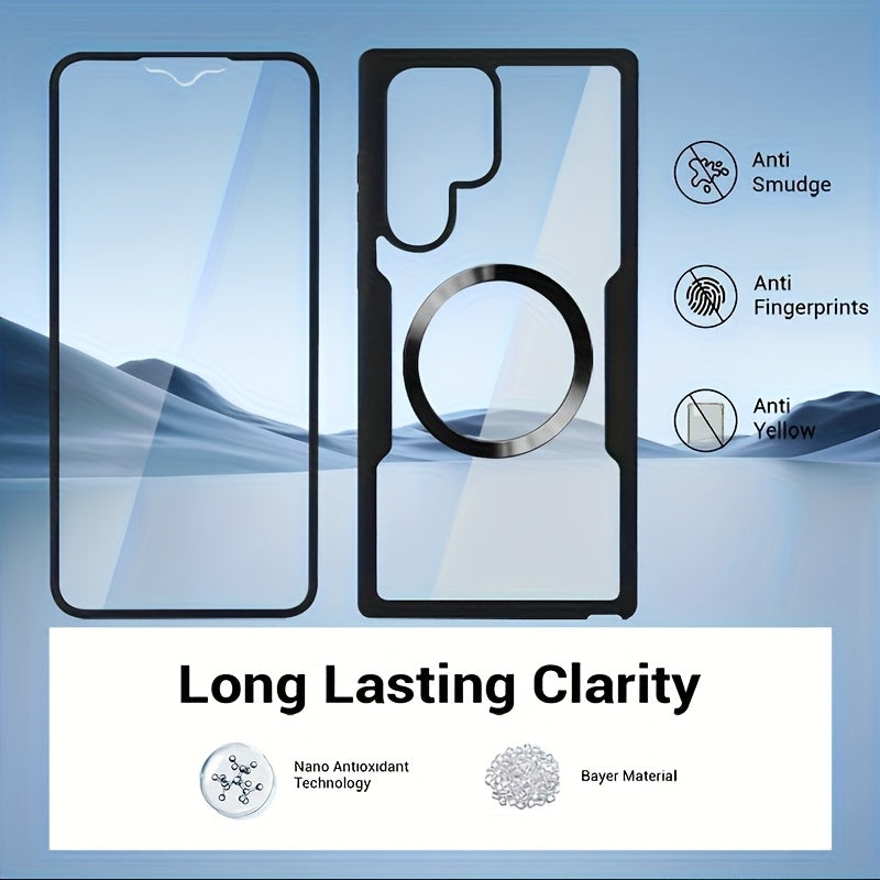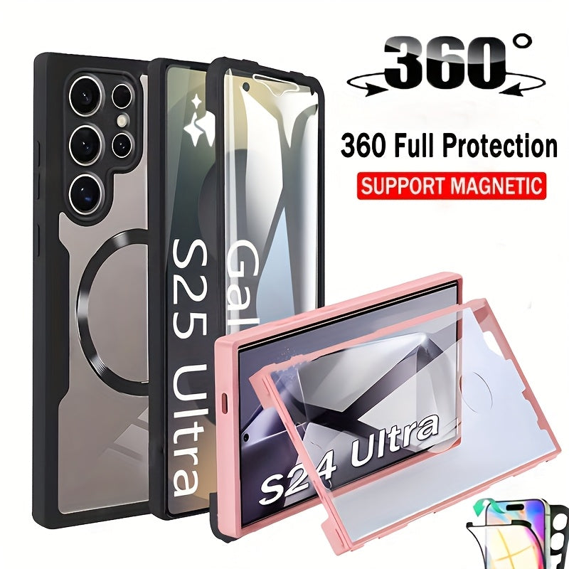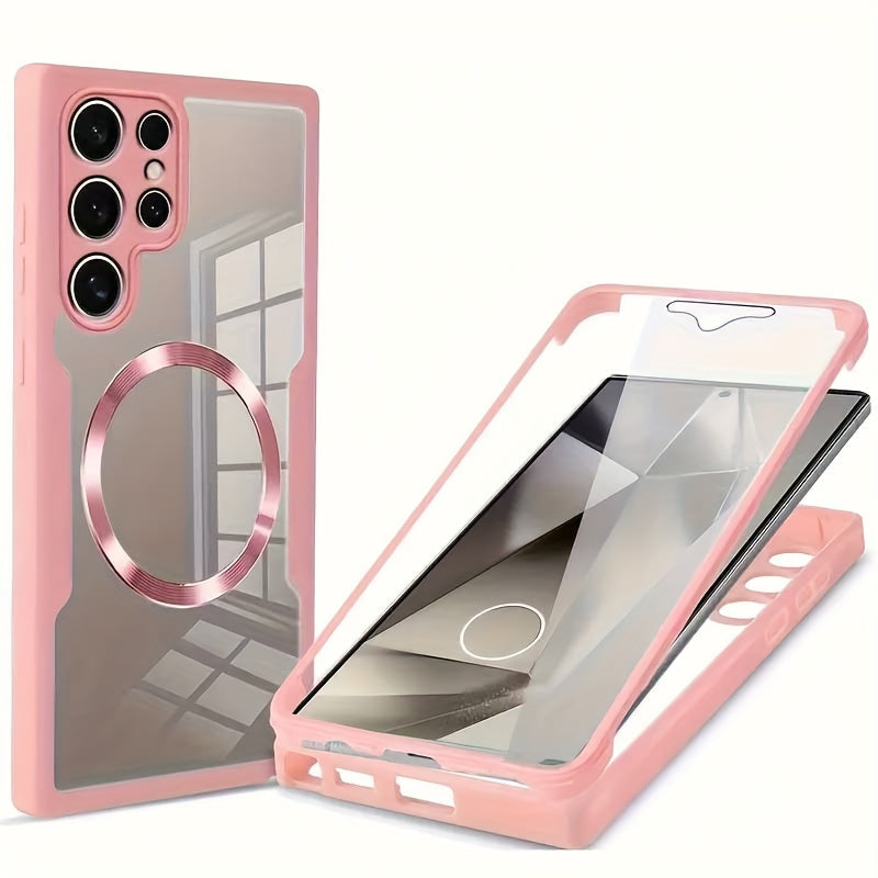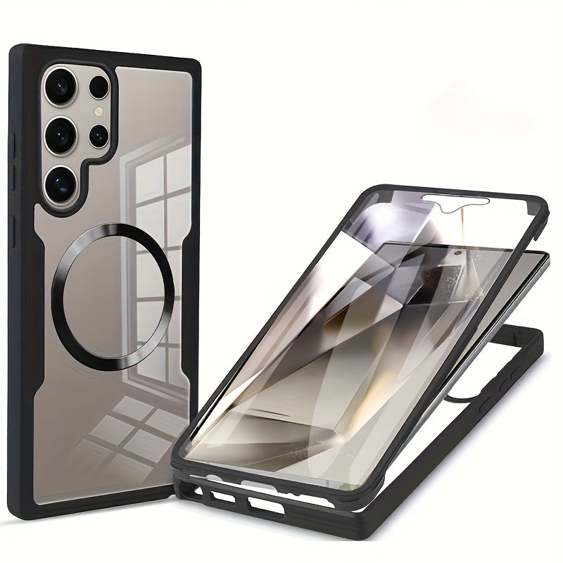 Introducing the MagSafe360 Armor, a dual-sided magnetic phone case crafted for maximum durability and full MagSafe compatibility. Designed for Samsung Galaxy S25 Ultra, S24 Ultra, S23 Ultra, S22 Ultra, and A Series (A16, A26, A36, A56), this case supports wireless MagSafe charging, while providing complete 360° coverage with a transparent finish and strong metal frame.