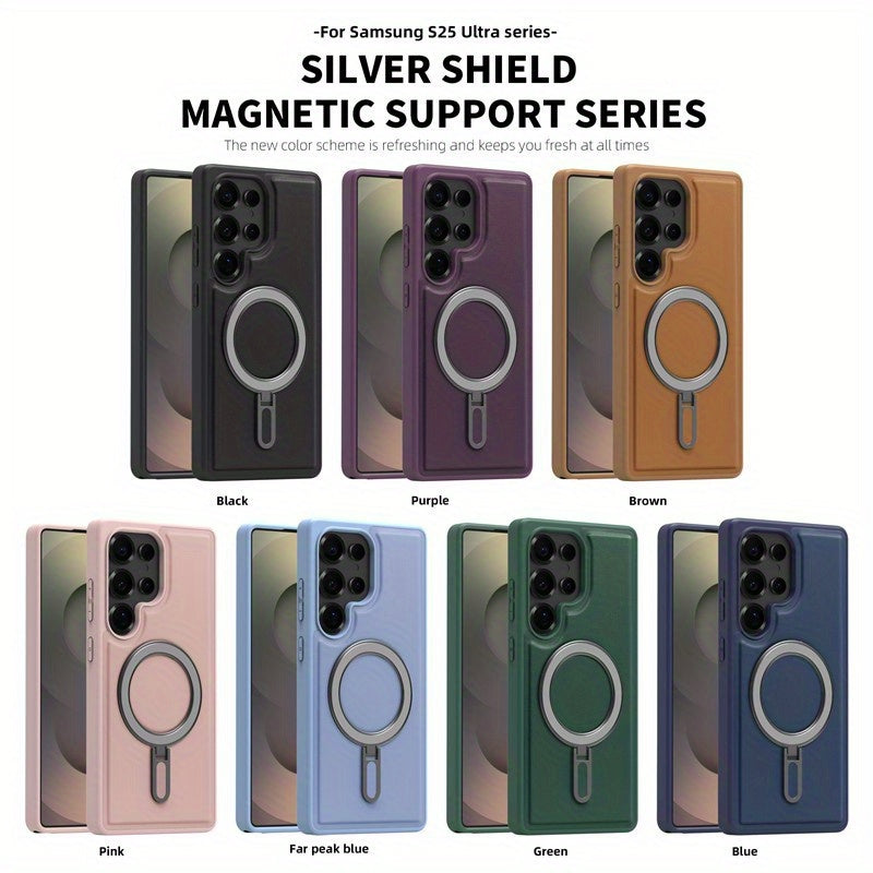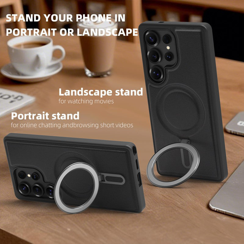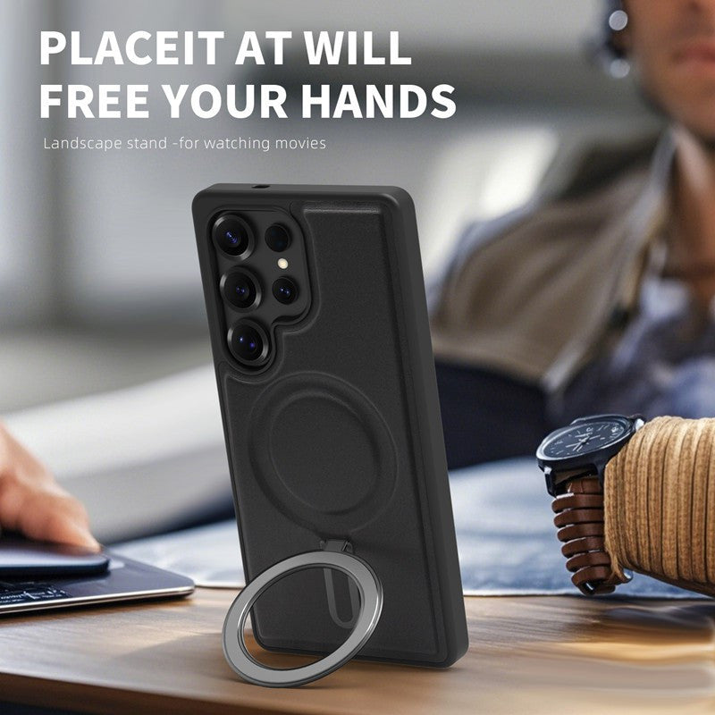 The MagCore Stand Case delivers powerful protection with modern magnetic convenience. Designed for the Samsung Galaxy S25 Ultra, S24, S23, and S22, this MagSafe-compatible protective case features an integrated magnetic ring, shockproof structure, and a foldable stand for hands-free use.