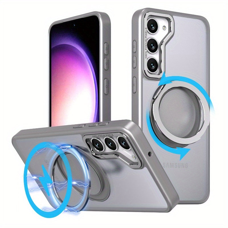 Experience full-circle protection and convenience with the MagSpin Armor, a sleek MagSafe-compatible case featuring a durable TPU + acrylic build and a 360° rotating metal stand. Designed for Samsung Galaxy S22, S23, S24, and S25 series, this multi-color protective case supports magnetic wireless charging while offering secure grip and shock-resistant performance. Perfect for users who want utility, protection, and a pop of style in one cover.