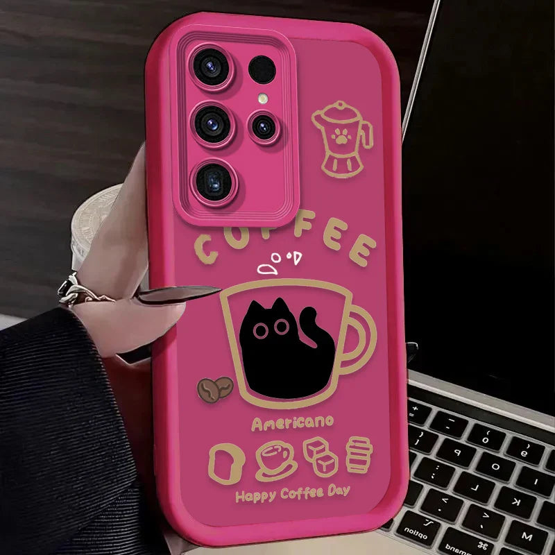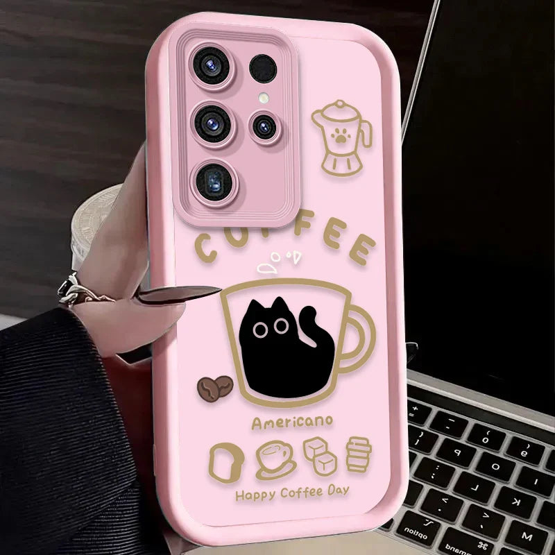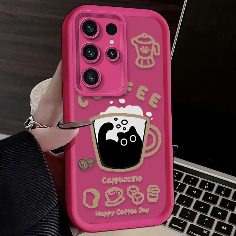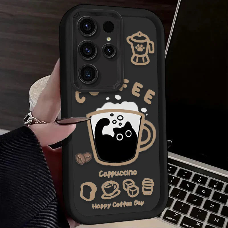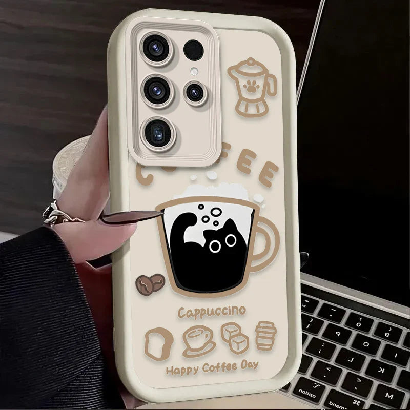 PurrLatte Case – Cute Coffee Cat Protective Cover for Samsung Galaxy S Series