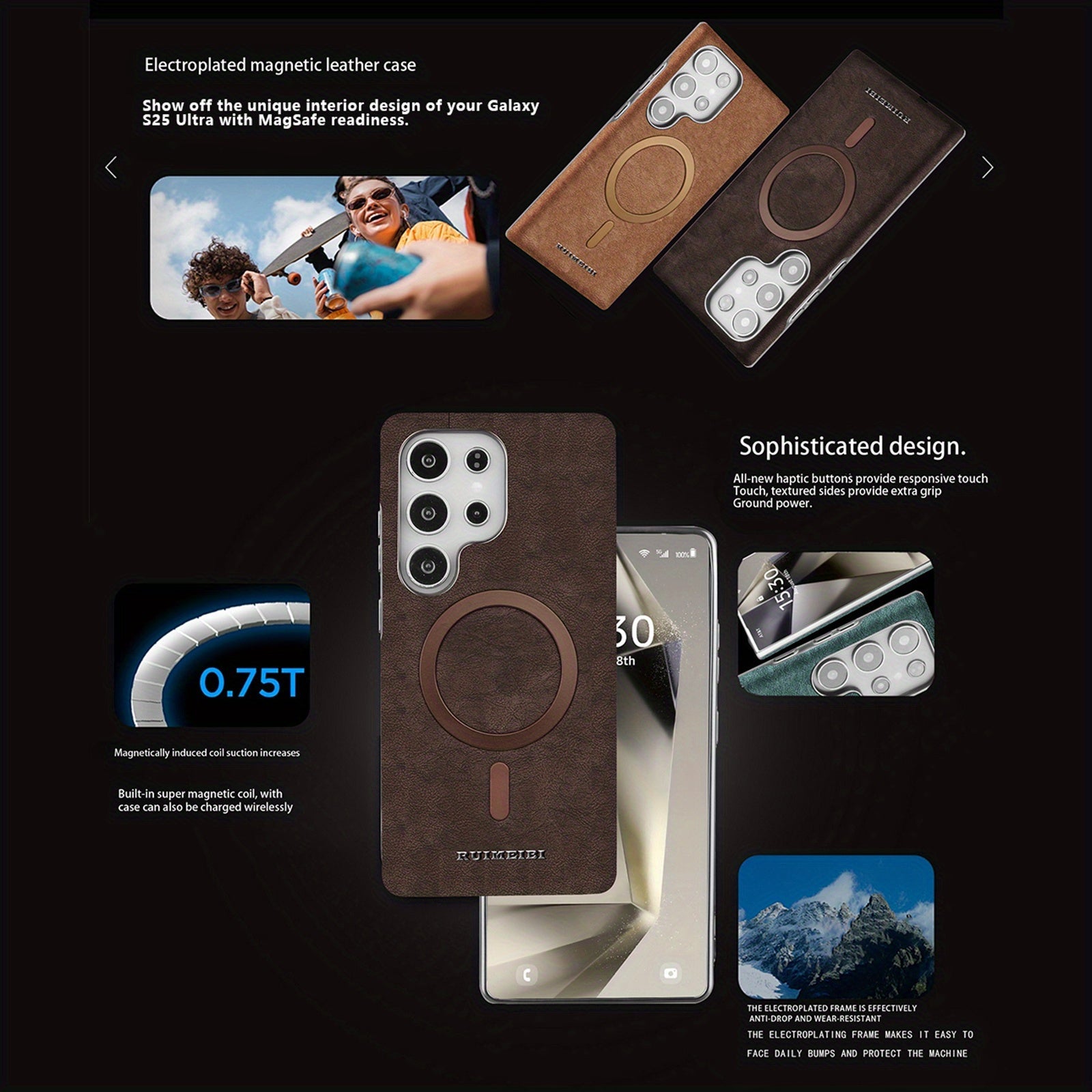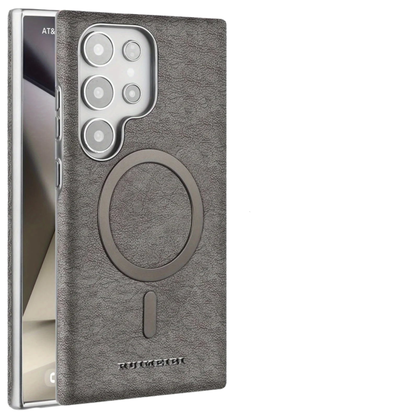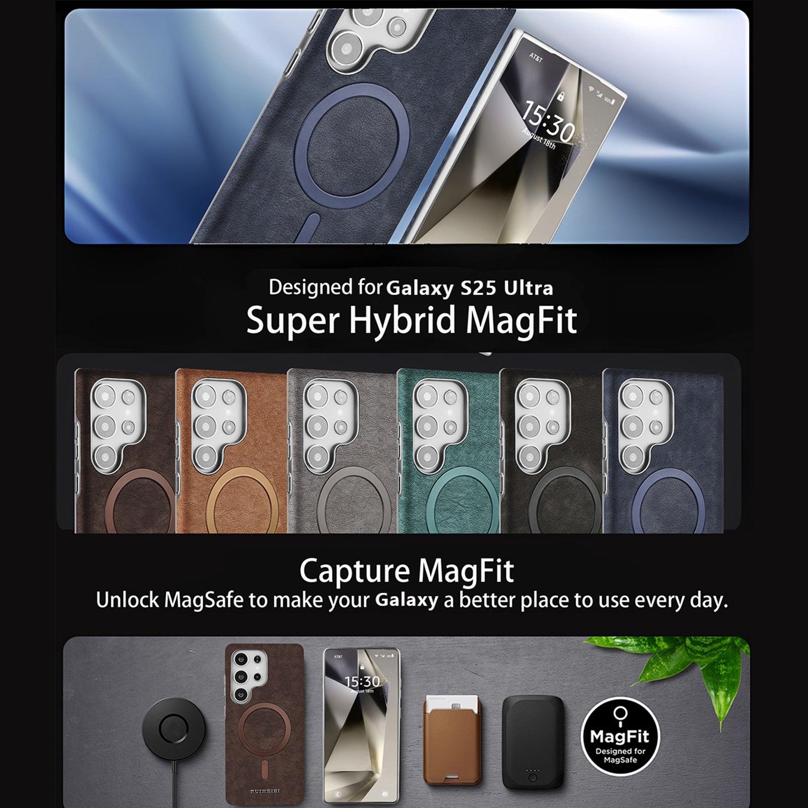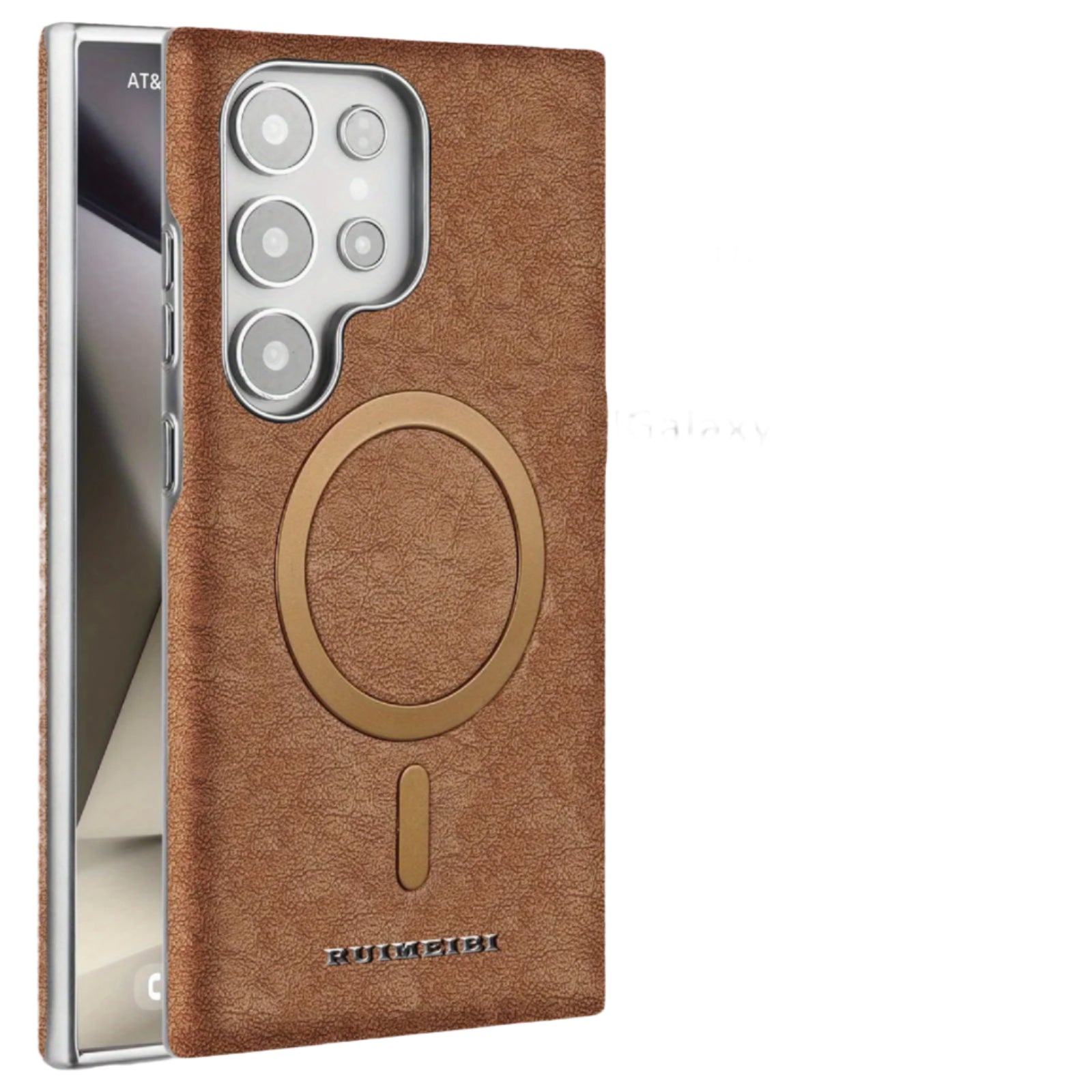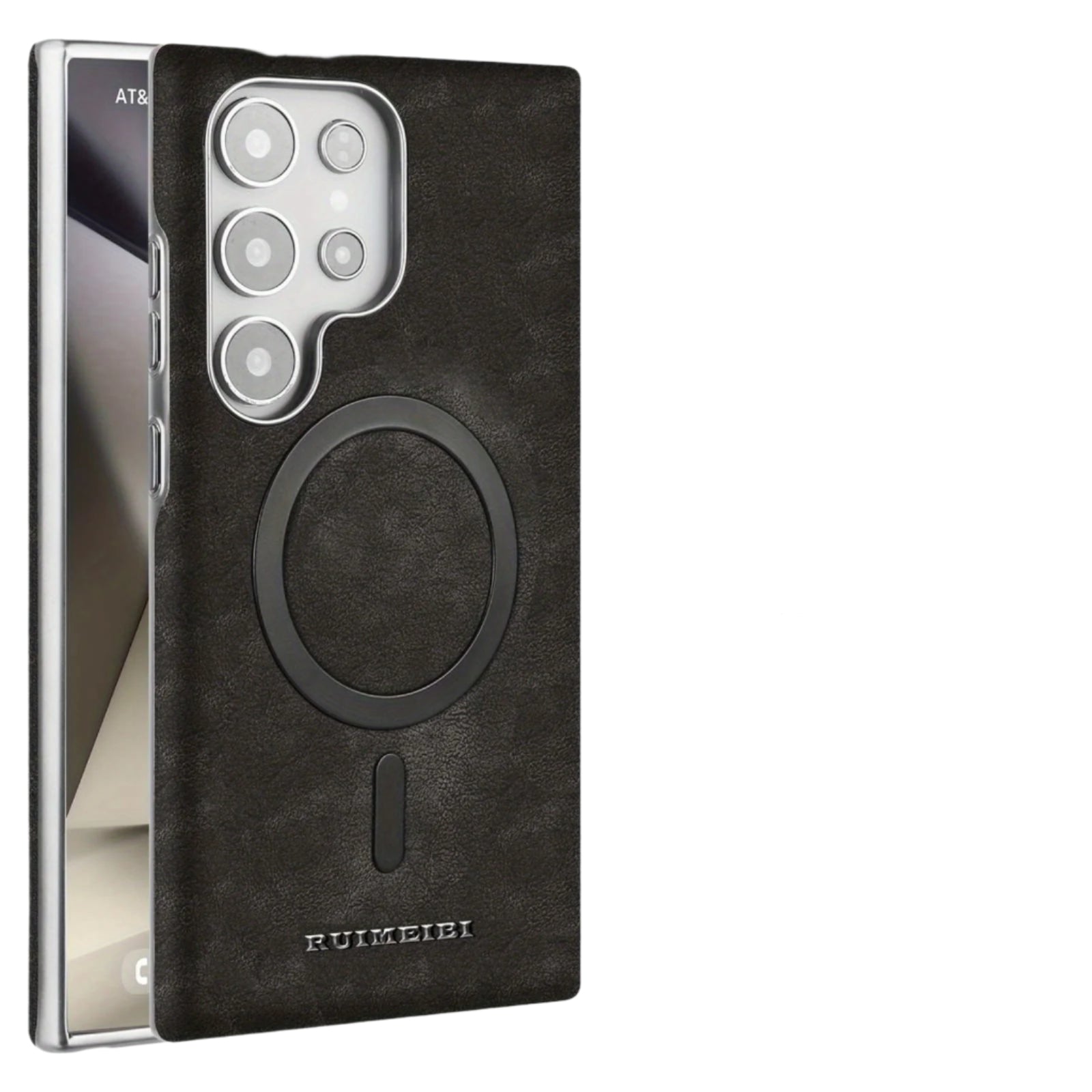 The RetroMag Leather Case combines timeless design with modern functionality. Crafted with a faux leather vintage-textured finish and built-in magnetic core, this case delivers a sophisticated look while providing everyday shock protection for your Samsung Galaxy S25 Ultra.