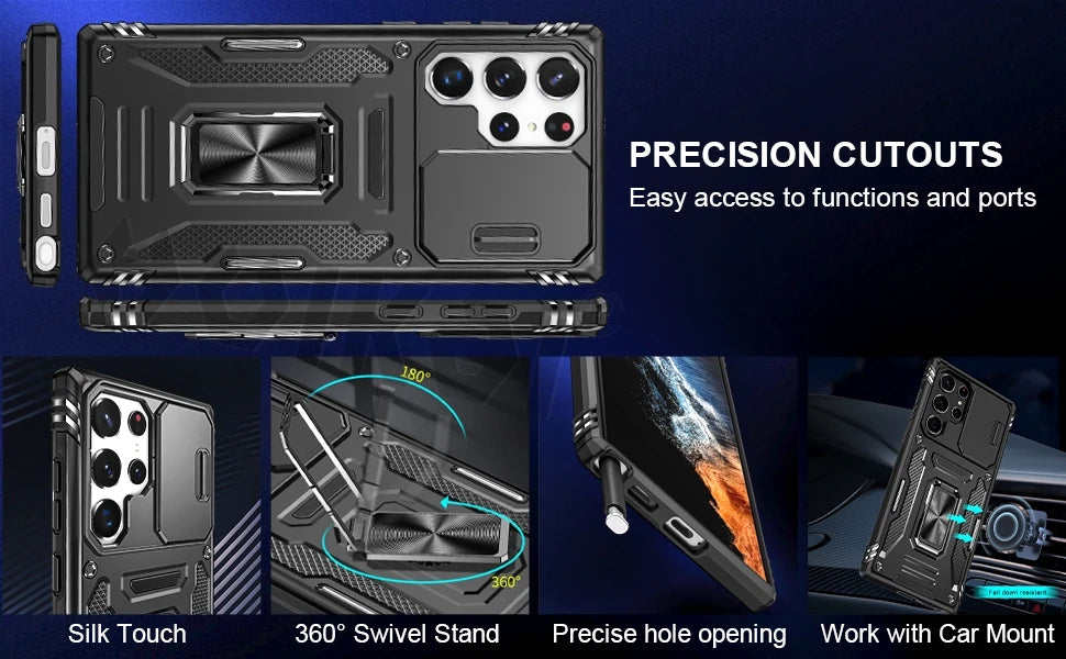 Slide Camera Full-Body Shockproof Rugged Military-Grade Case for Samsung Galaxy S