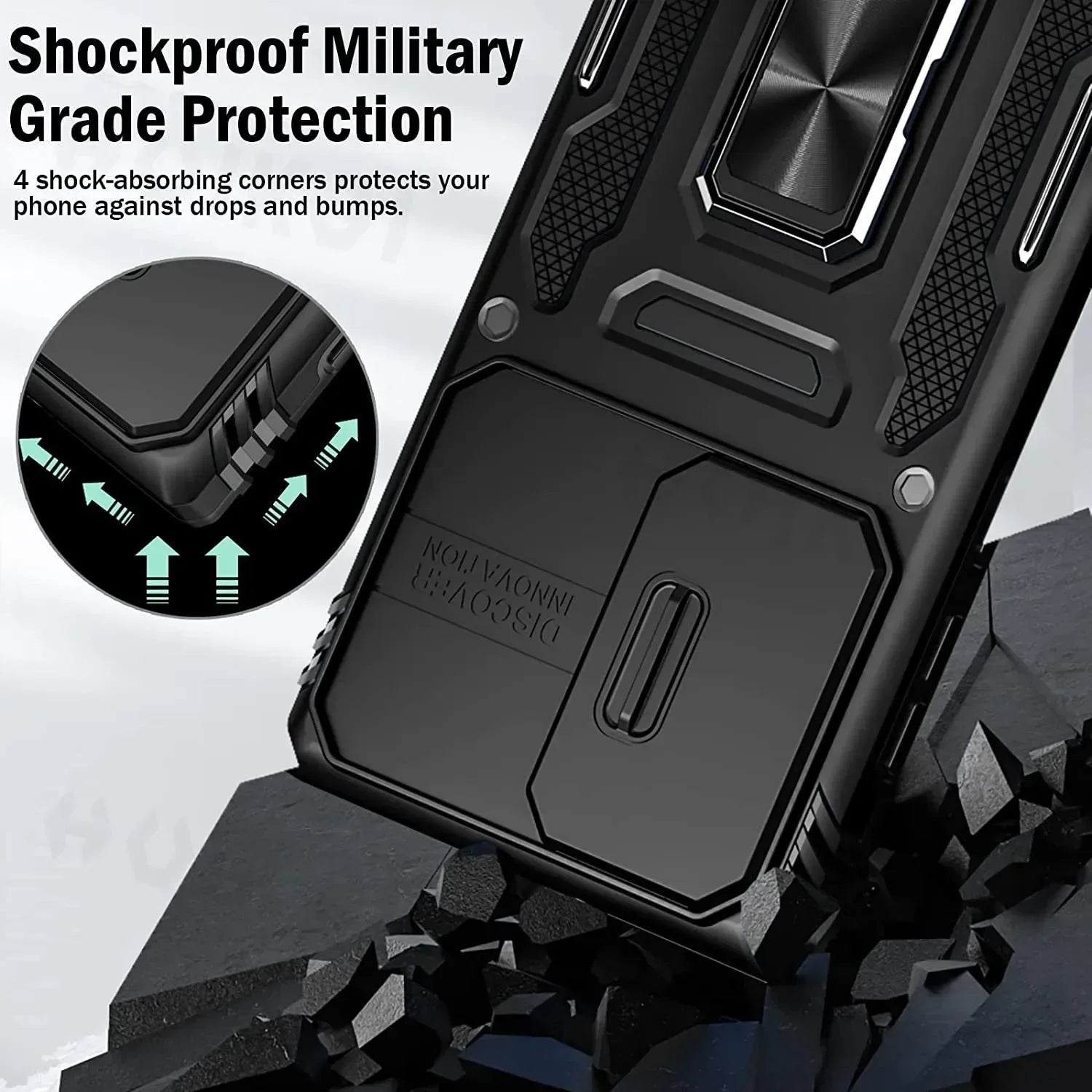 This slide camera full-body shockproof case is the perfect choice for anyone seeking military-grade protection and advanced functionality while maintaining a stylish look. Keep your device safe and secure in all situations!