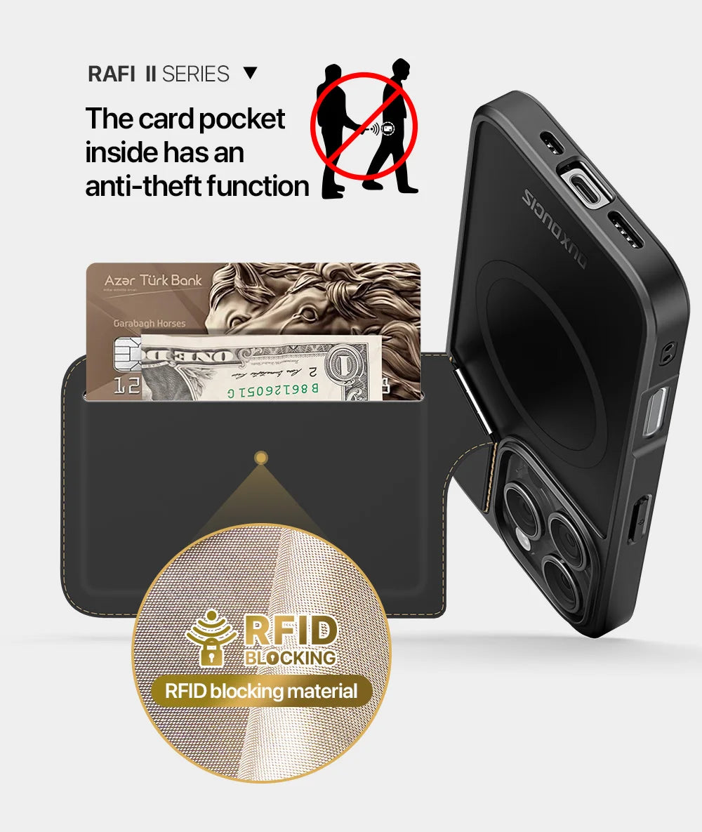 • Integrated Wallet: Keep your essential cards and cash safe and accessible with the case's sleek wallet compartment.
