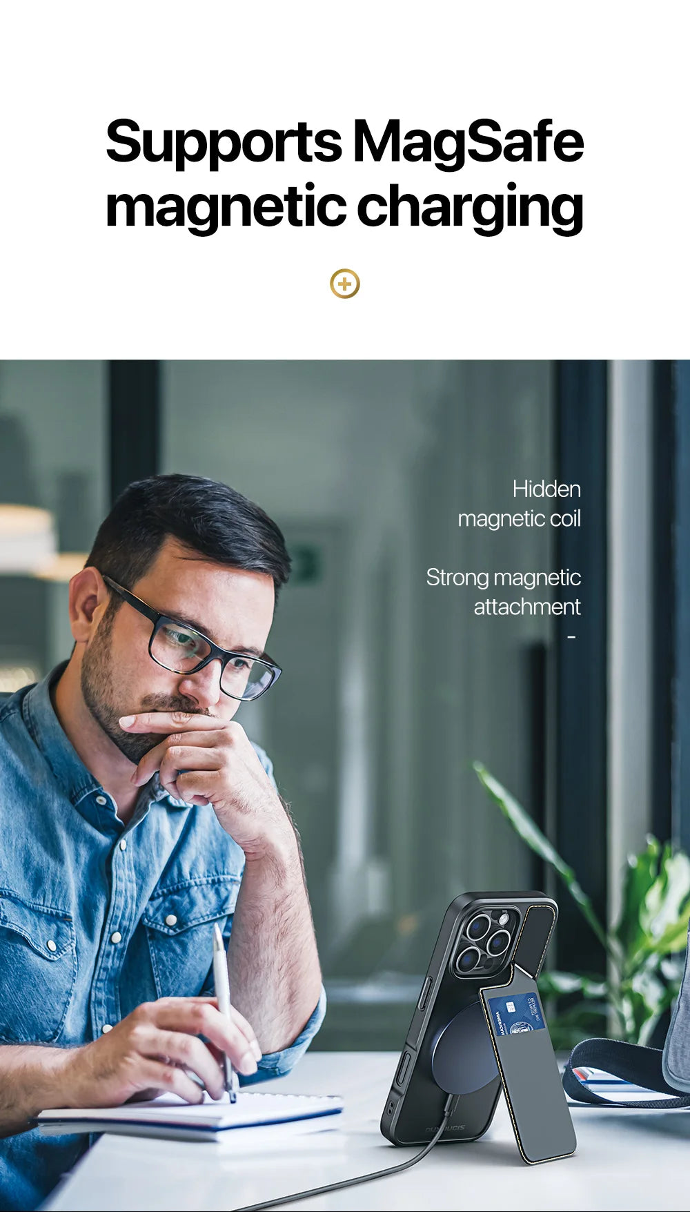 Featuring built-in wireless charging compatibility, a convenient wallet for cards, and a portrait stand, this multifunctional case provides both practicality and style. Enjoy seamless charging and hands-free viewing in one durable, compact design.